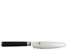 Shun Classic 4.5, A serrated edge that doesn't tear, a sharp edge that won't dull on ceramic dinner plates -- the Classic 4.5 Ultimate Steak Knife by Shun is the best of both worlds. The steak knife is designed so that only the tips of the serrated edge touch your plate, to reduce dulling. Exotic Japanese steel allows the knife to hold its razor sharp edge longer without excessive re-sharpening. High density VG-10 super steel cutting core is clad with 32 layers of SUS410 high carbon steel creating a rust-free, wa