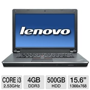 Lenovo 03193SU, ThinkPad Edge 15 15.6 - in AntiGlare HD 16:9 LED (1366x768) Black Textured Intel HD Graphics (1) Genuine Windows 7 Professional 64 Low Light Sensitive 640 x 480 Camera ThinkPad b/g/n (4) 6-cell Li-Ion Battery Intel Core i3-380M Processor 4 GB (2 GB x 2) memory (2) DVD Recordable Drive (3) 500GB / 5400rpm HDD