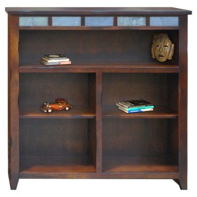 Fire Creek Bookcase, FC6301.DNC Features: -One open compartment at the top and two compartments below with adjustable shelves.-Made in USA. Construction: -Constructed of maple solids and maple veneers. Color/Finish: -Danish cherry finish.-Clean transitional style with real slate tile accents. Collection: -Fire Creek collection.