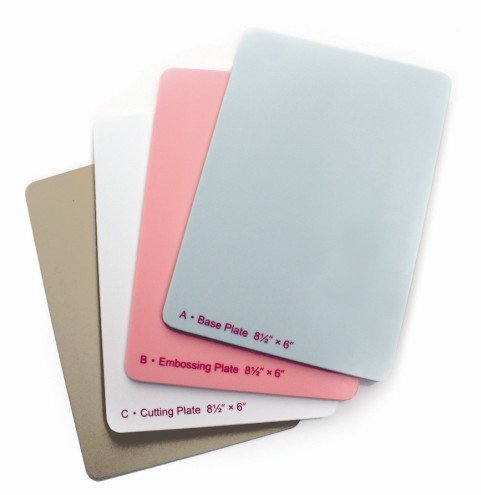 From Spellbinders and available for pre-order is the Junior Replacement Plates for use in the Grand Calibur Die Cutting Machine. You receive three plates: A Base Plate; B Embossing Plate; and C Cutting Plate; and a tan embossing pad.Approximate size: 8 1/2 x 6" Read more customer reviews ...